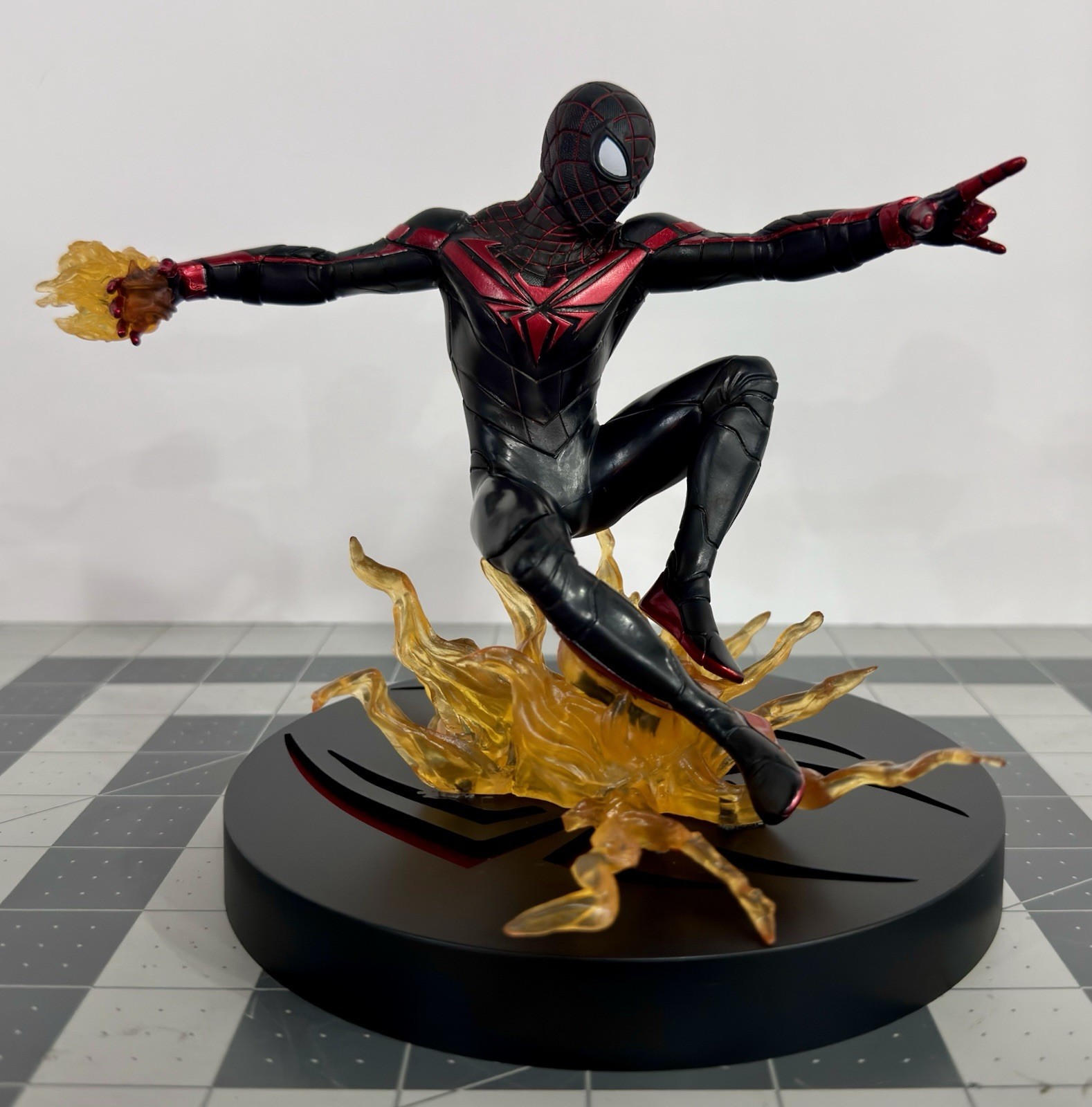 Swinging out of his hit video game, Miles Morales prepares to hurl a Venom Blast at his opponent in this Gallery statue! Based on the game’s costume design, Miles leaps over one blast as he charges up another in this sculpture made of high-grade plastic, and featuring translucent materials that catch the light. With detailed sculpting and paint applications, it comes packaged in a full-color window box. Ages 14 and up.